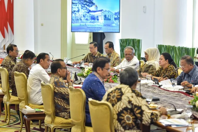 NEWSDAILY.ID Jawa Barat -- Presiden Jokowi memimpin Ratas tentang Percepatan Pembangunan Jawa Timur, di ruang Garuda, Istana Kepresidenan Bogor, Jabar, Selasa (9/7/2019) siang.